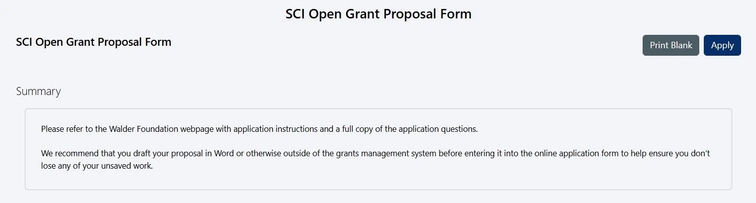 For inquiries about the content of your application, send an email to science@walderfoundation.org.